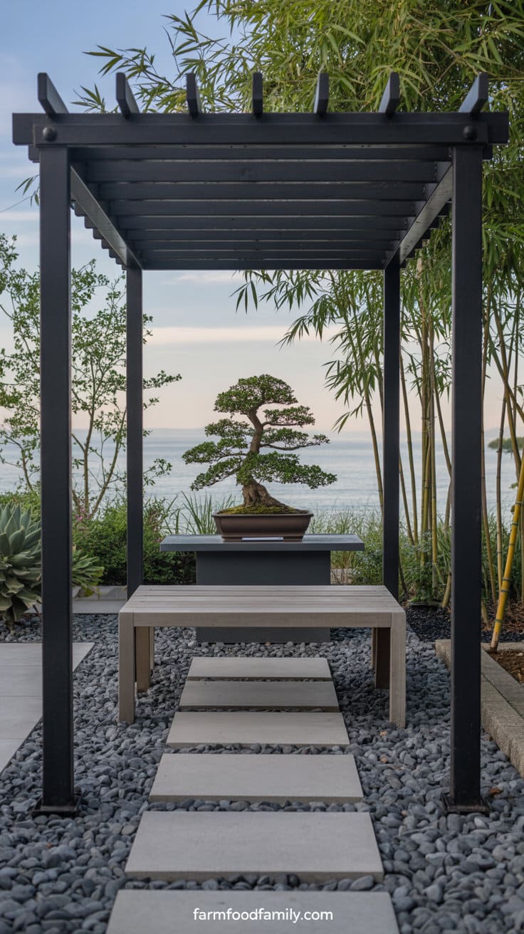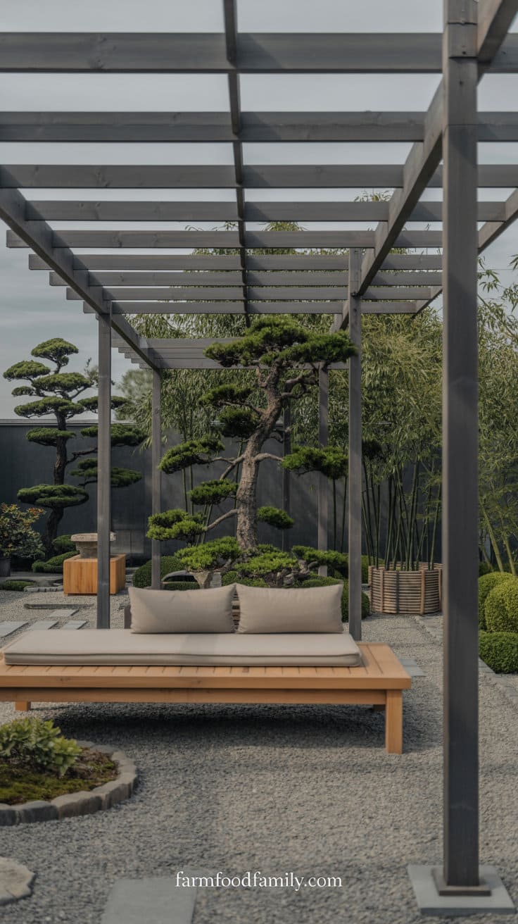 4. Japanese Zen-Inspired Pergola with Minimalist Touches