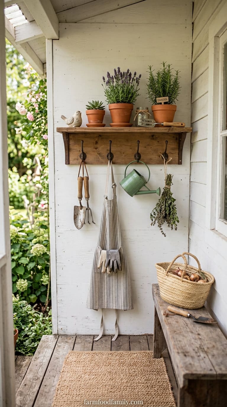 Got clutter? Compact storage solutions are your best pals. Think shelves and hooks right on your porch walls, perfect for hanging tools or tucking away seasonal gear.