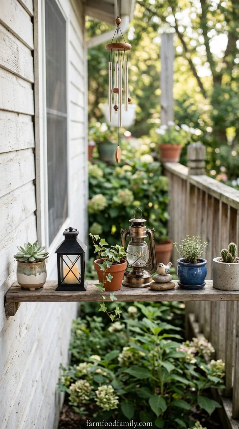 Sprinkle your porch with some decorative accents—like lanterns or wind chimes—that add a touch of magic without the mess.