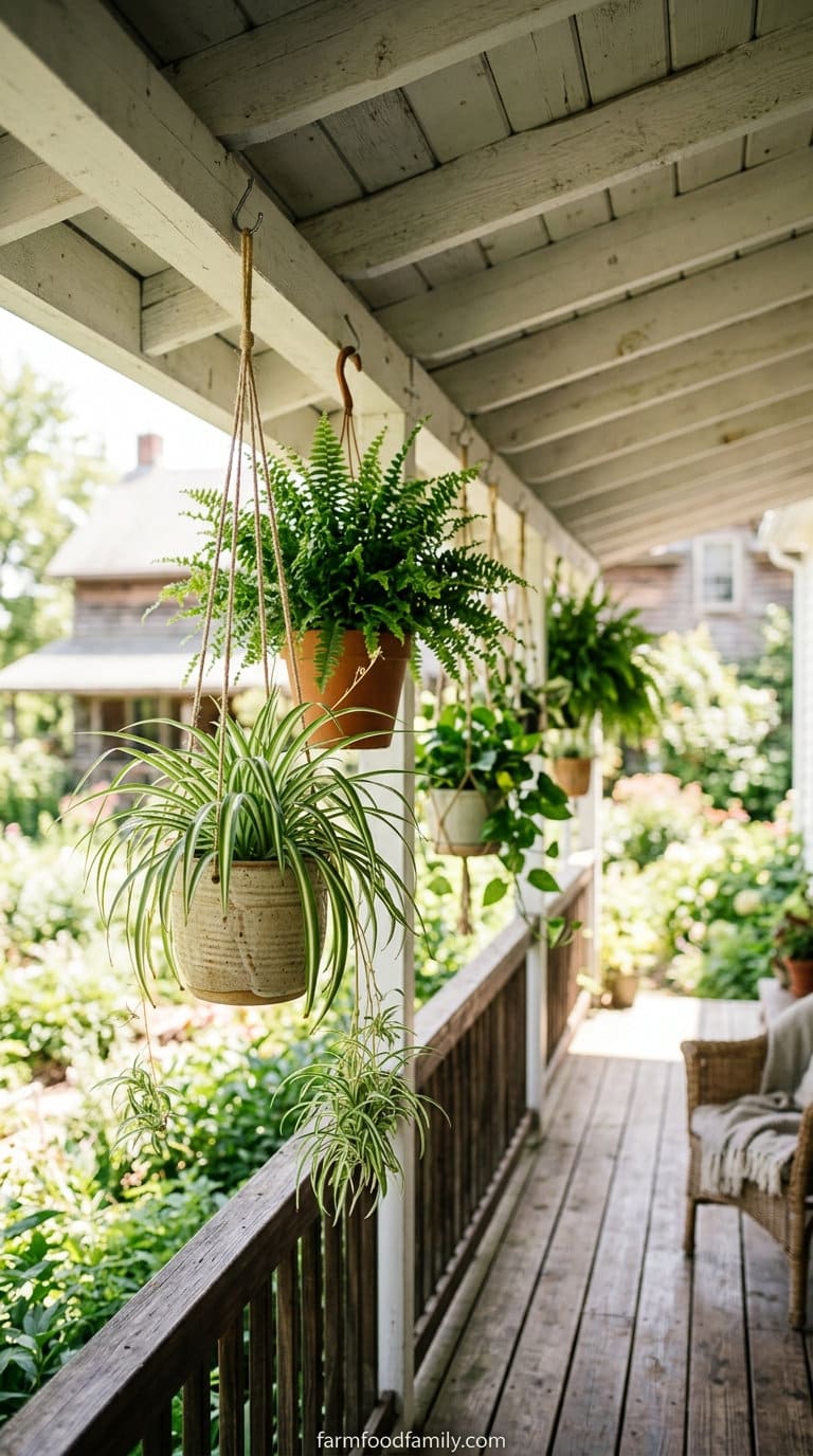 Swing into style with hanging plants. These babies don’t just save floor space, they make your porch feel like a lush oasis.