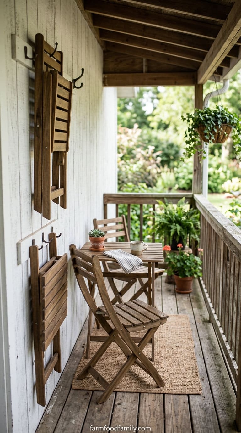 When you’re tight on space, foldable furniture is a total game changer. Chairs and tables that fold flat can tuck away when not in use, freeing up precious porch space. The pros? They’re super flexible and easy to store.