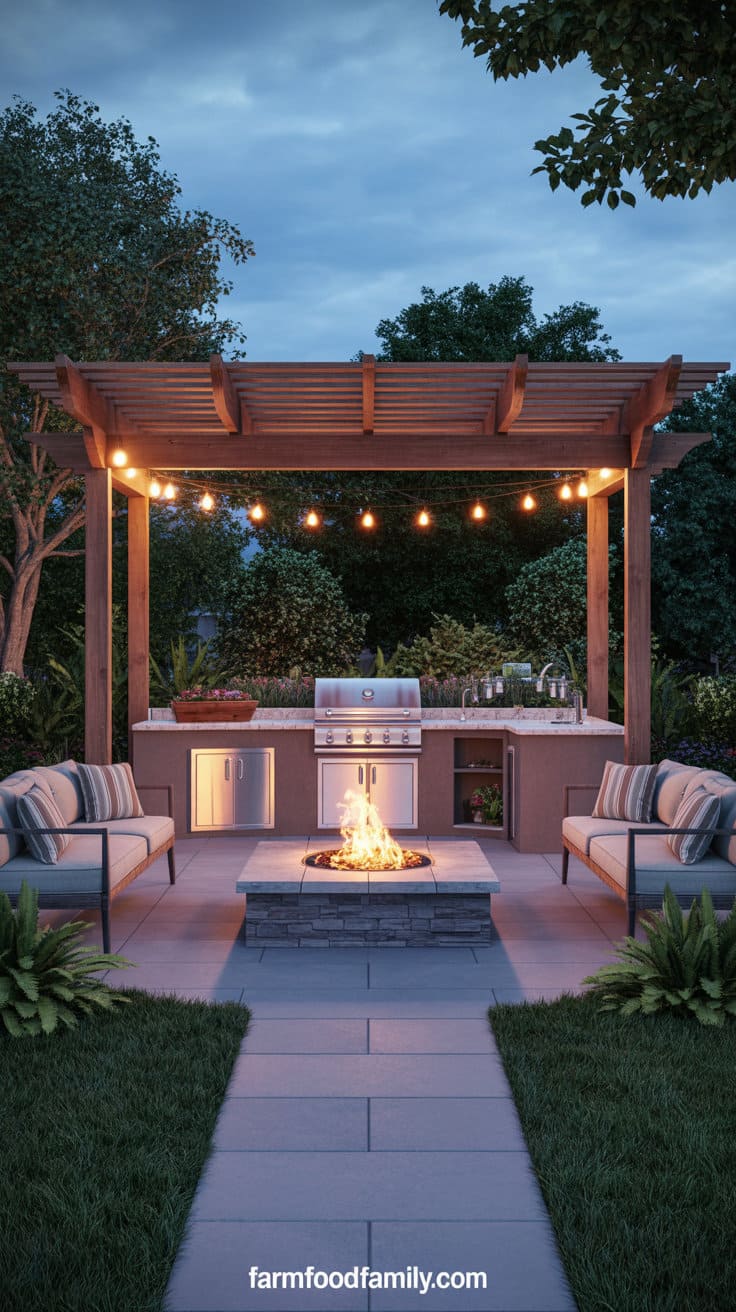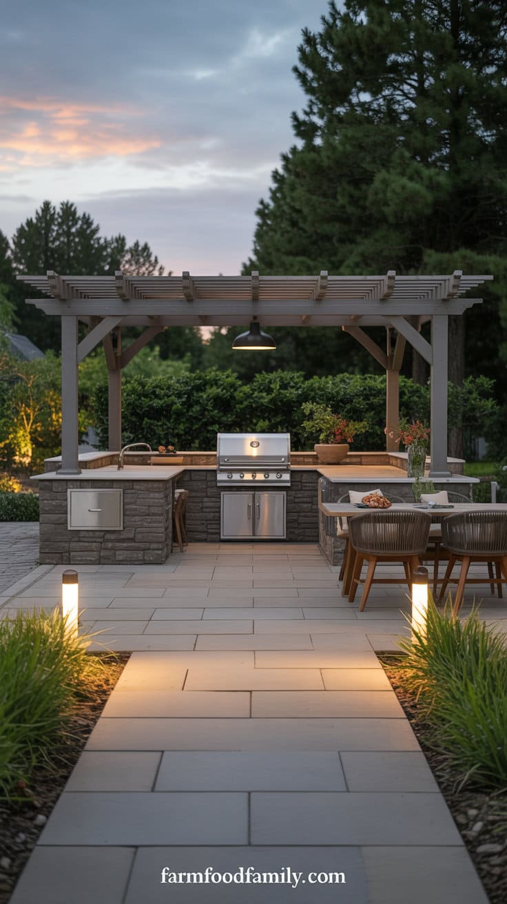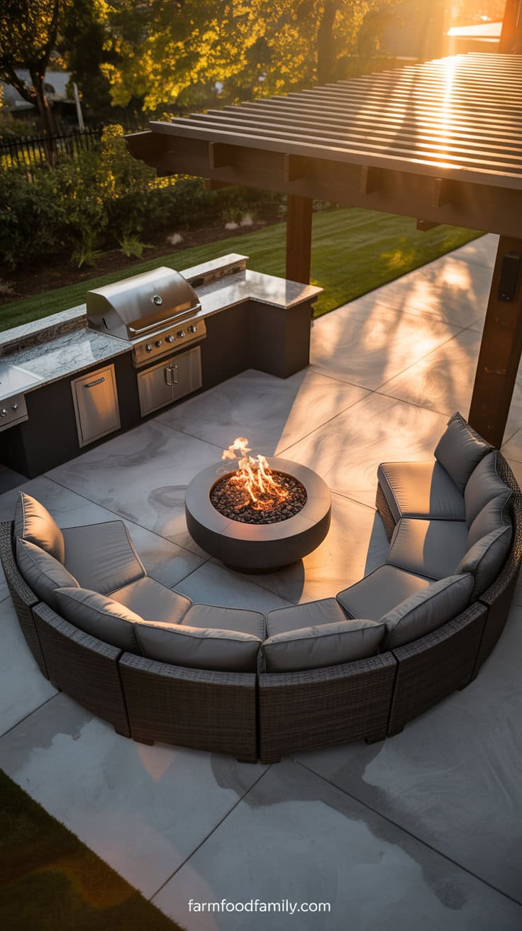 Expand your patio to create the perfect outdoor hangout, complete with a built-in grilling station, seating area, and enough shade.