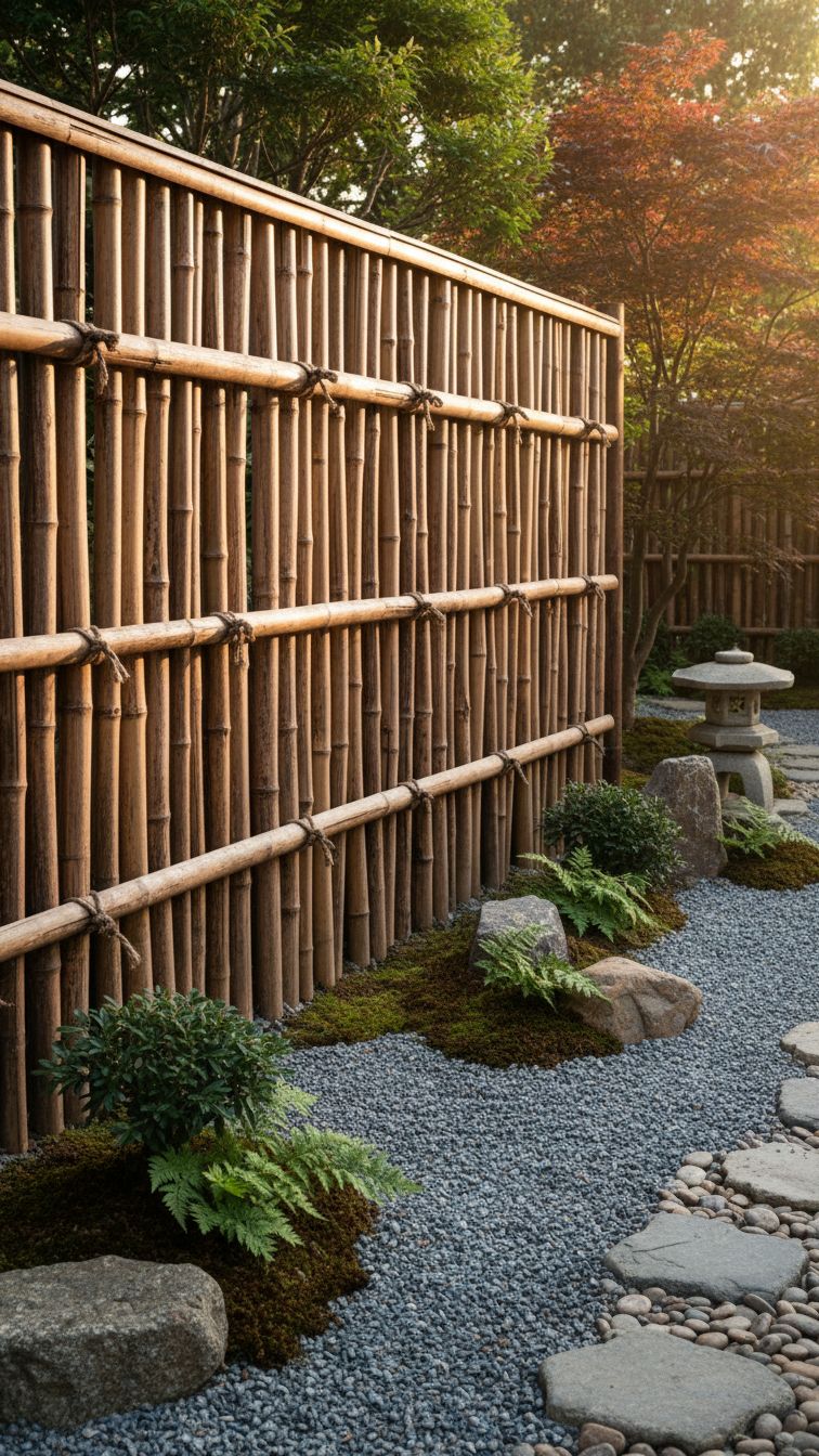 If you’re going for a bit of an exotic look, a rustic bamboo fence is a smart pick. Not only does it provide a quick and eco-friendly barrier, but it also adds a touch of zen to your yard.