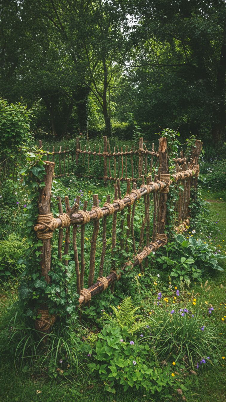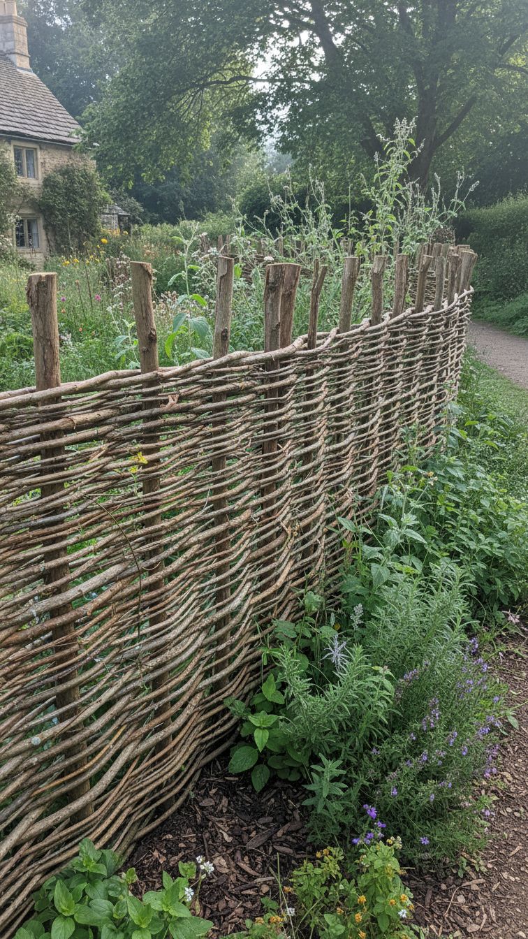 A wattle fence is a crafty little number made from weaving branches right through upright stakes. It’s a method that’s been around since forever, and all you need are some sturdy sticks.
