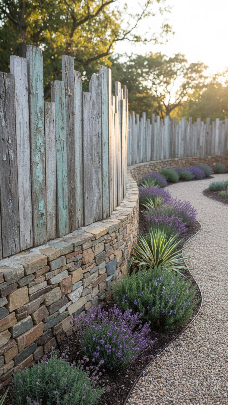 Mixing stone and wood in a fence? Now that’s a power move. It’s like the fence is part of the land itself. The stone gives you strength, while the wood brings warmth and style.