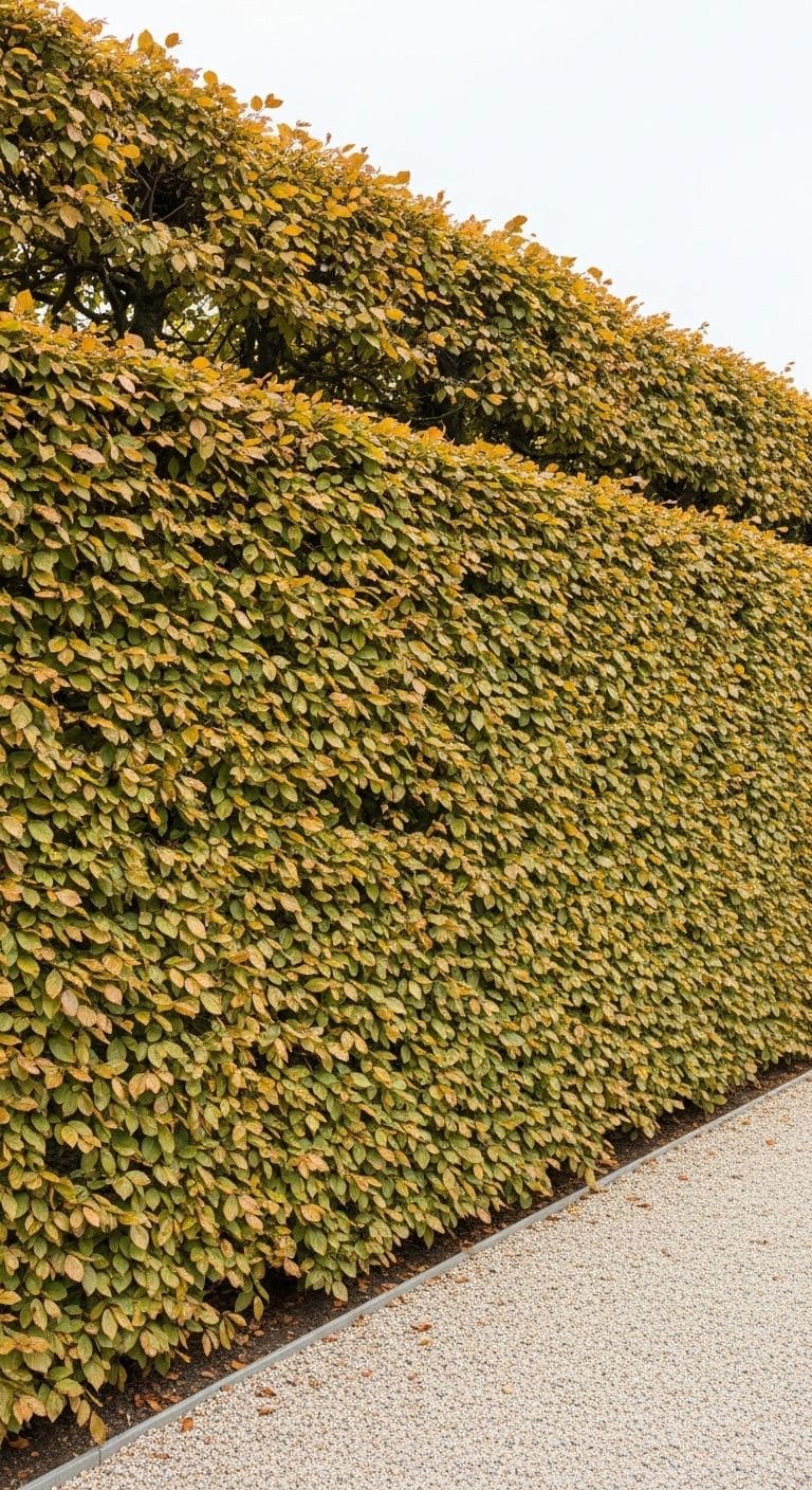Beech trees are perfect if you’re aiming for a robust, leafy fence. These trees grow slow and steady, giving you a dense, lush barrier that integrates seamlessly into any garden or yard.