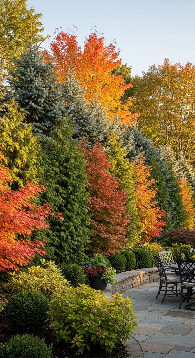 Mixing evergreen and deciduous trees can keep your yard looking sharp all year round. This combo packs the double punch of lush greenery that never fades and seasonal color that pops.